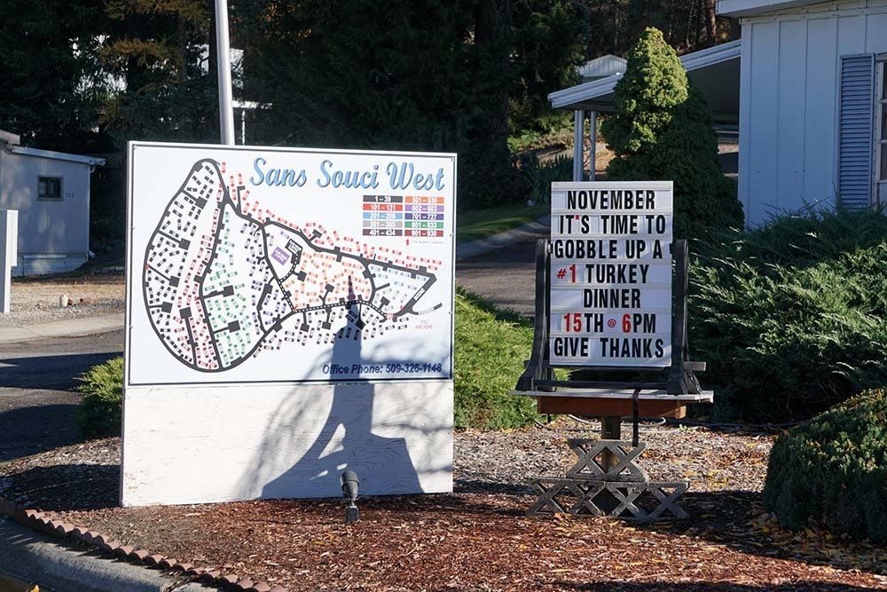 Sans Souci West is situated on the former site of the beautiful Natatorium Park. The El Katif Shriners of Spokane bought the land, and it has been flourishing as a manufactured home community since 1969. Enjoy the four seasons in this quiet & peaceful country setting with wonderful views of the Spokane River and the convenient access to this great city.
